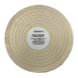 These cotton sewn polishing wheels need to have compound applied while the buffing wheel is spinning. Given their thicker and stout stack of cotton material sewn together, it's important to use a buffing wheel rake often if the compound somewhat solidifies during use on the end of the polishing wheel. A hard tacky surface of compound that has built up can be indicative of a need to use a buffing wheel rake.